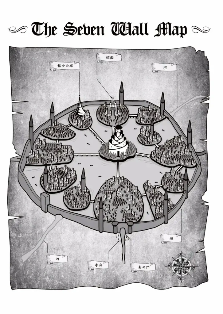 Uma barreira para manter afastado os Seres DemonĂacos, fora tambĂ©m colocada. Por essa razĂŁo, havia torres gigantescas construĂdas em todos os distritos.